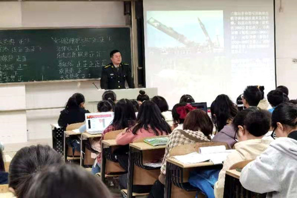 此次课程以一段视频拉开序幕,视频由战争地区拍摄的真实画面剪辑而成,炮火纷飞,触目惊心。播放此段视频意在以此让同学们体会到战争的残酷,告诫同学们应珍惜和平、热爱和平。随后,孙月政分别就中国国防、国家安全、军事思想、现代战争以及信息化装备五个部分为同学们系统性地讲解军事理论。时而幽默风趣的语言令同学们对军事理论课程兴趣大增,将被动听讲化为主动,促进同学们更好地学习、理解军事理论相关知识。课程中,孙月政老师介绍信息化装备中核武器部分,引起同学们极大的反应,让同学们充分认识到这些武器的杀伤力以及危害,与此同时也让同学们明白拥有核武器的重要意义。