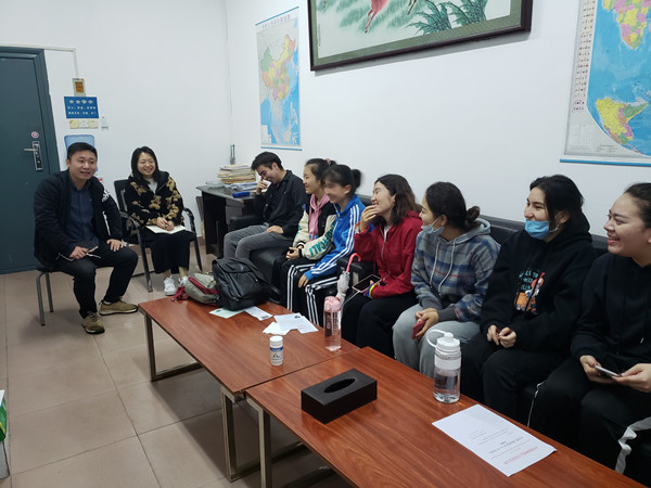 在两位辅导员的邀请下,各少数民族学生进行简要的自我介绍,同学们一一发言并对自身的基本情况、成绩、学业规划以及教育上所面临的问题进行说明。在听取了各同学发言后,陈卓君针对教师资格证考试、英语学习、普通话考试等方面,分享了自身的学习经验并给予相应的指导。周冲则强调少数民族学生要注意培养爱国情怀,积极向党组织靠拢。