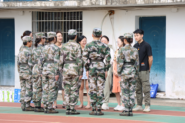 老师们和教官亲切交谈