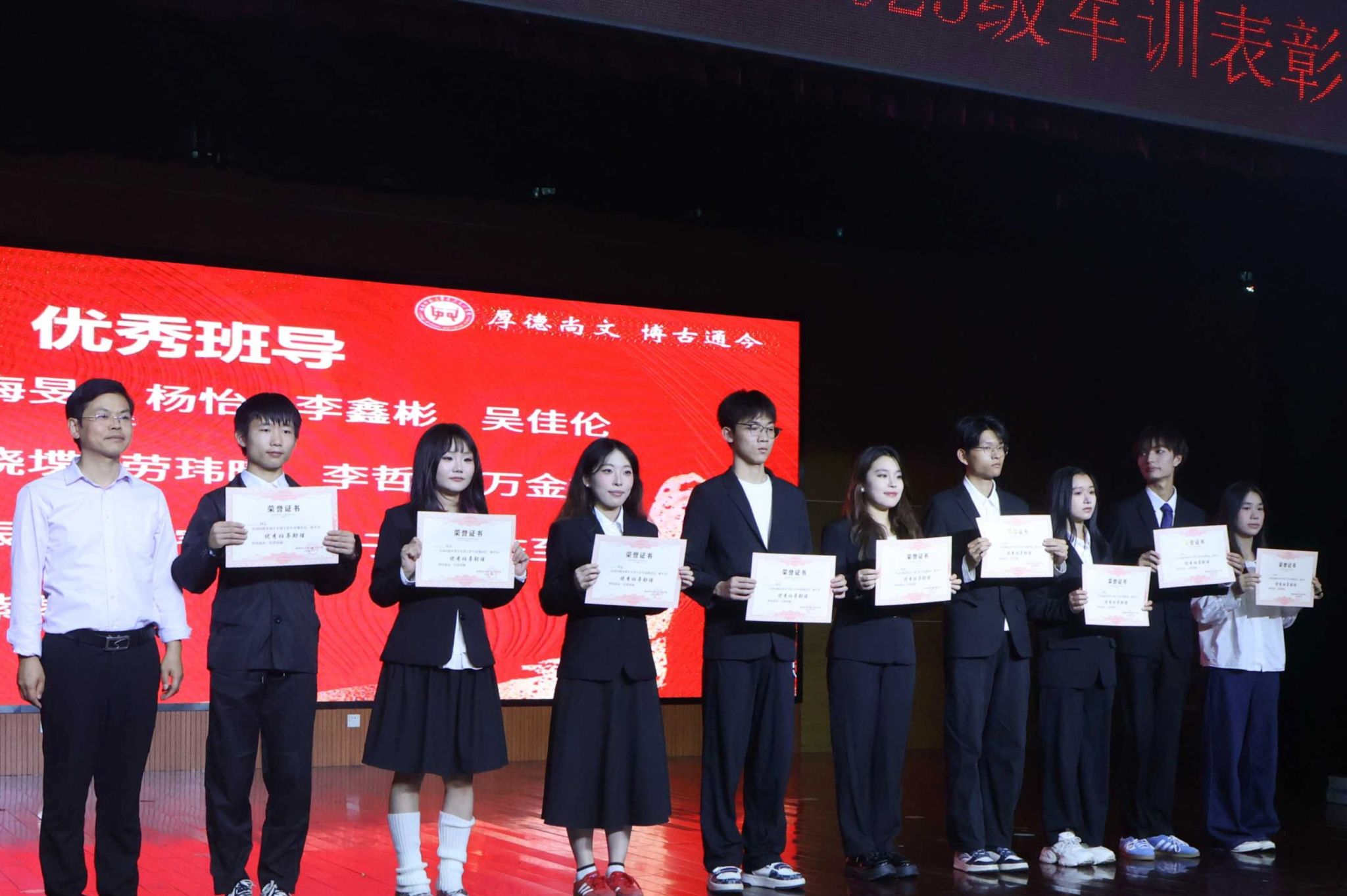 本次表彰大会全面展示了历文院2025级新生的军训成果,不仅增强了新生的集体荣誉感与学院凝聚力,更将军训的育人价值延伸至未来的成长之路,为新生的大学生活奠定了坚实的精神基础。