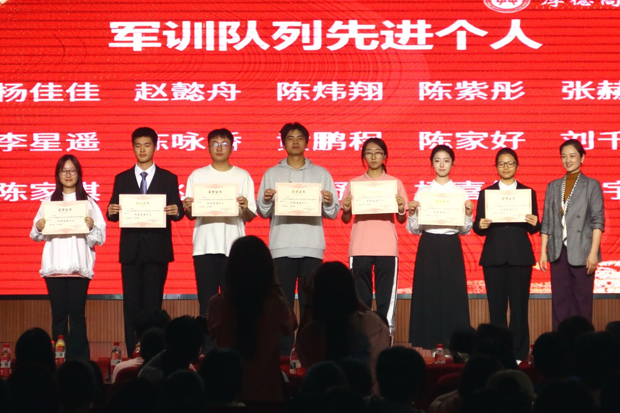 彭露为军训队列先进个人颁奖