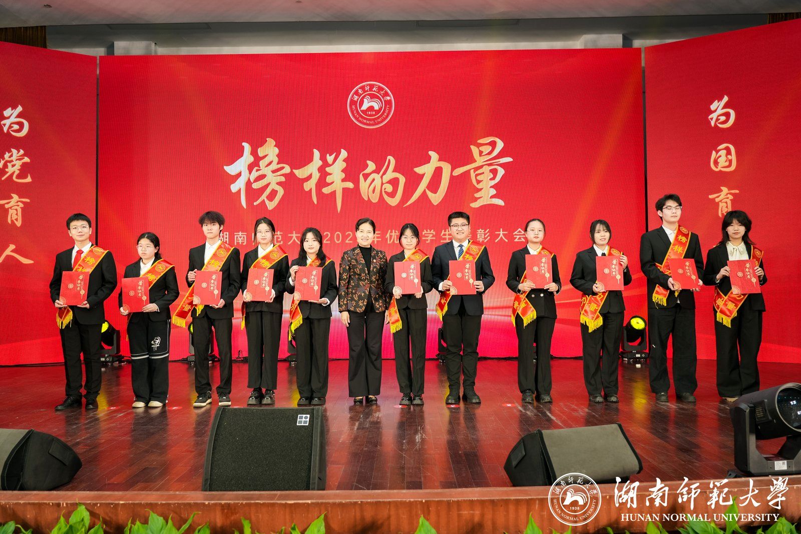 本次表彰大会分为“勤勉”“严谨”“求实”“创新”四个篇章,WilliamHill(威廉希尔)官网多名优秀学生和集体获得表彰。其中,2023级历史教育三班李卓颖同学作为国家奖学金获得者代表,2022级历史教育二班刘家玮同学作为国家励志奖学金获得者代表,以及2022级历史教育二班作为优秀班集体代表,分别上台接受表彰。国家奖学金获得者代表还在大会上表演了诗朗诵《榜样的力量》,展现了WilliamHill(威廉希尔)官网学子积极向上的精神风貌。