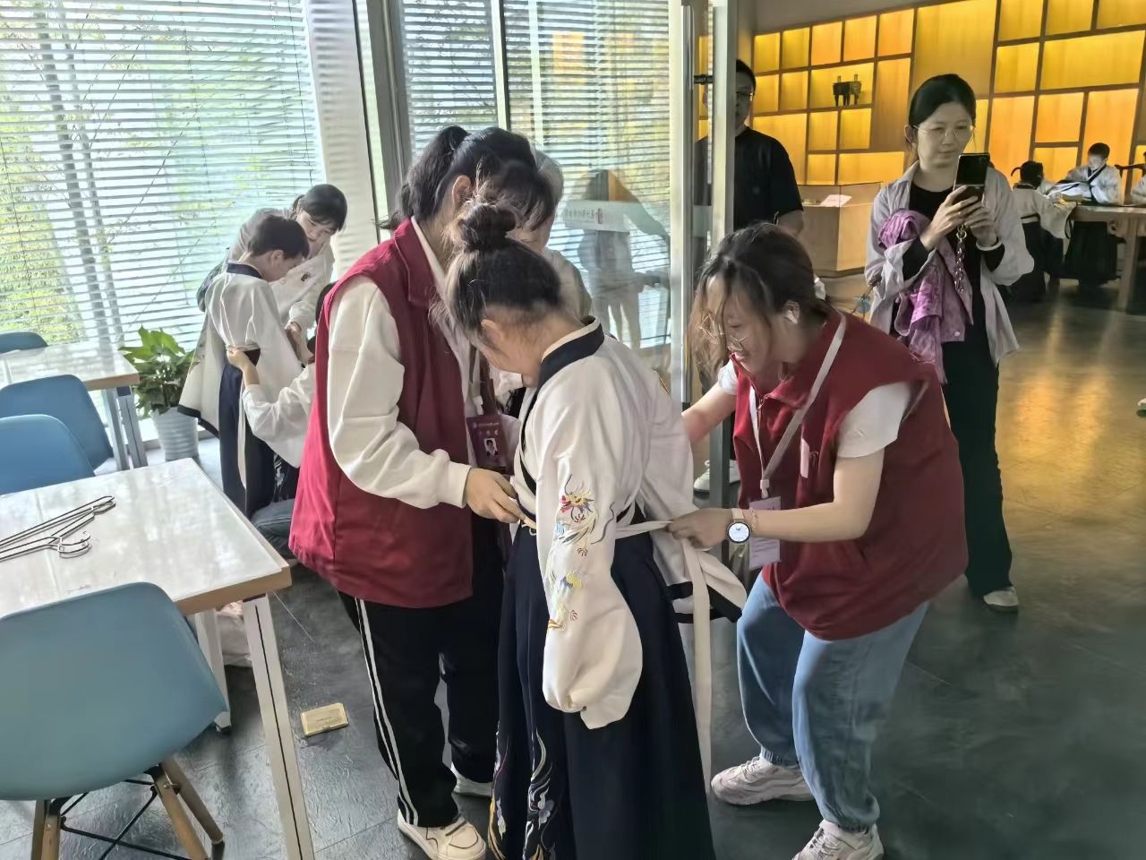 活动伊始,在院青工部负责人的引领下,志愿者前往博物馆参加专业培训,并根据自身兴趣和能力分为三组,分别充当“票务能手”、“咨询达人”、“教育助手”三种角色。“票务能手”负责引导游客有序检票,帮助老人打印纸质票,“咨询达人”负责为游客们答疑解惑,“教育助手”负责协助馆方老师带领小朋友开展相关的历史文化课程。在志愿服务过程中,志愿者们协助馆内工作人员开展相关工作,维护馆内秩序,同时也用生动有趣的课程向小朋友们传播历史文化知识。活动结束后,志愿者进行总结并依次分享志愿心得。