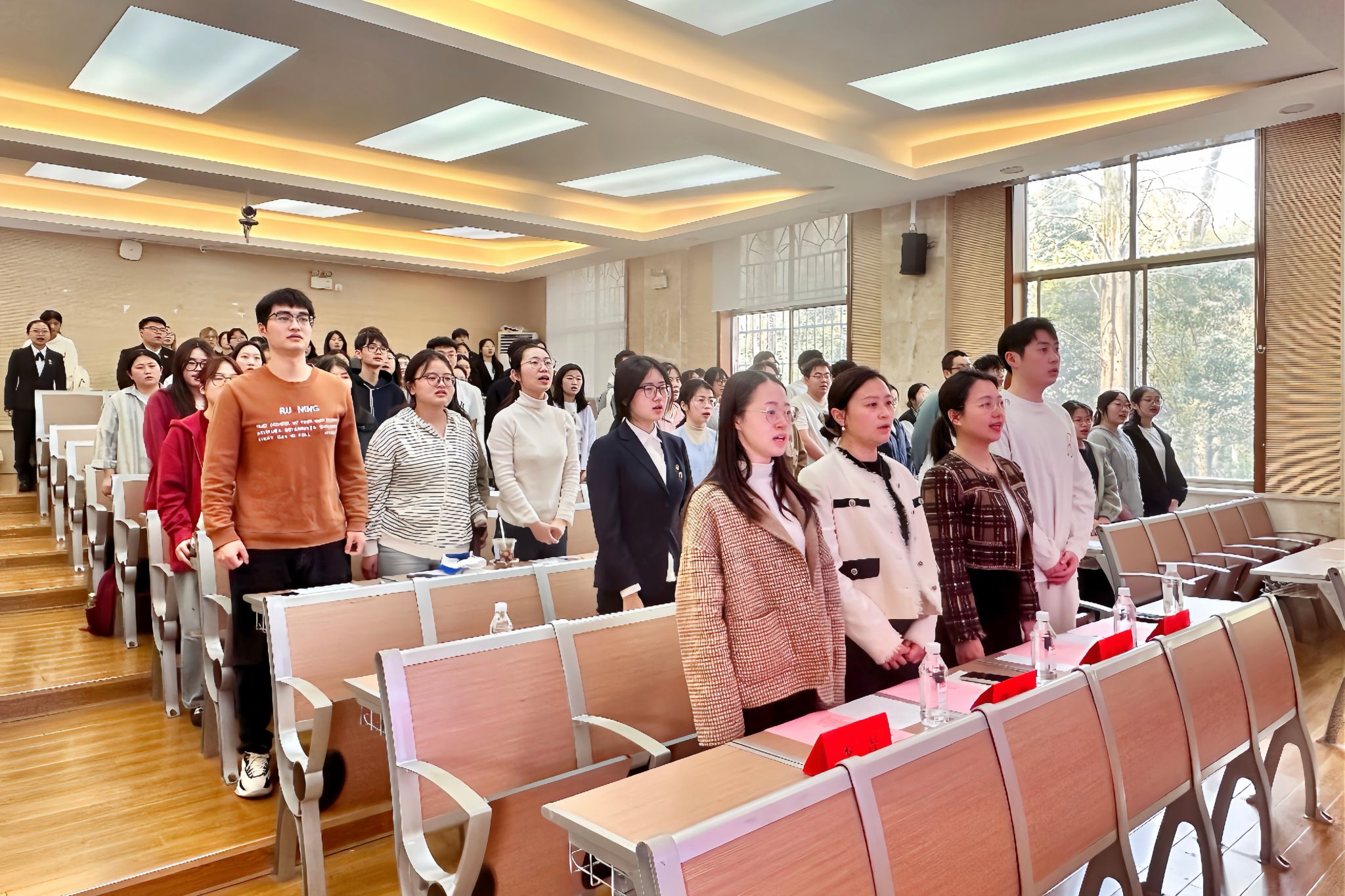 全体与会人员肃立,齐声高唱团歌。随后,校院团学组织主要负责人依次上台述职。他们围绕过去一年的工作重点,详细汇报了在技能培训、志愿服务、社会实践等方面取得的工作成绩,分享工作中的心得体会。通过系统回顾过去一年的工作,他们深入分析自己在工作中仍存在的问题,并针对性地提出改进方案。在民主评议环节,民主评议代表严格秉持公平、公正的原则,根据委员述职和书面述职情况,从德、能、勤、绩、学五个方面进行评分,对各团学干部做出全面客观的评价,为后续工作的改进提供了有力支持。最后,院团委书记陈卓君作总结发言。她对过去一年团学组织的工作给予了充分肯定,对团学干部的辛勤付出表示衷心感谢。同时,她也对团学组织未来的发展提出了殷切期望,希望全体成员能够继续保持饱满的热情和昂扬的斗志,为学院的繁荣发展贡献青春力量。