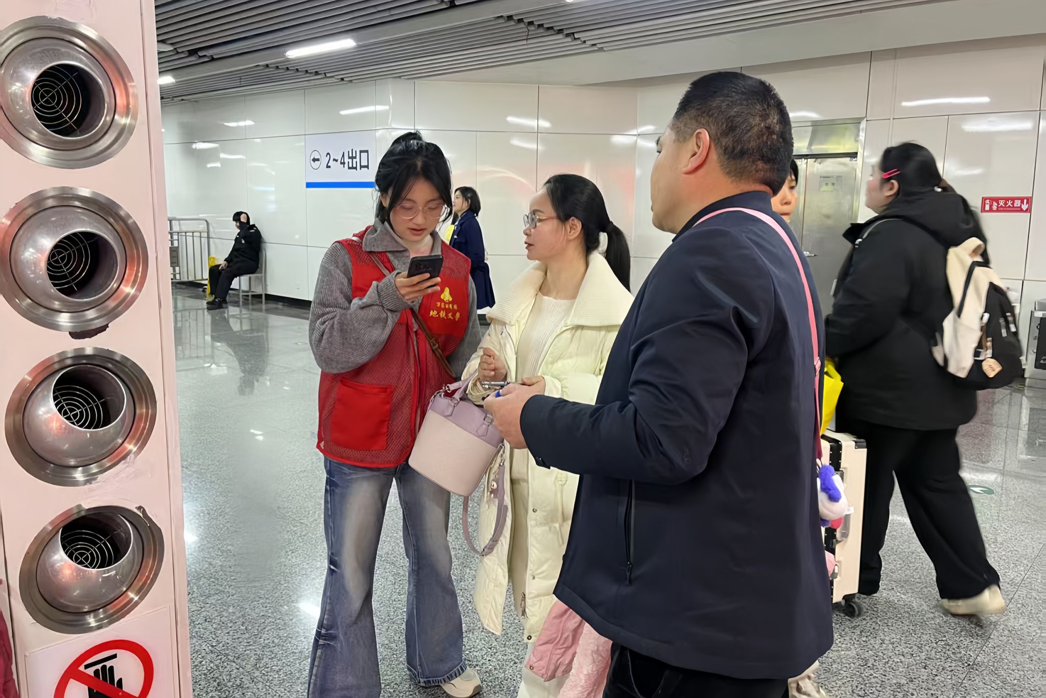 在活动启动阶段,志愿者们接受了系统的岗前培训,深入学习站点布局、线路走向及换乘规则,并根据个人特长合理分配岗位职责。服务期间,志愿者们分工协作,与地铁站工作人员紧密配合,高效开展乘客引导、咨询解答、秩序维护等工作。志愿者们以热情细致的服务,展现了新时代青年的责任与担当,赢得了乘客和工作人员的广泛好评。
