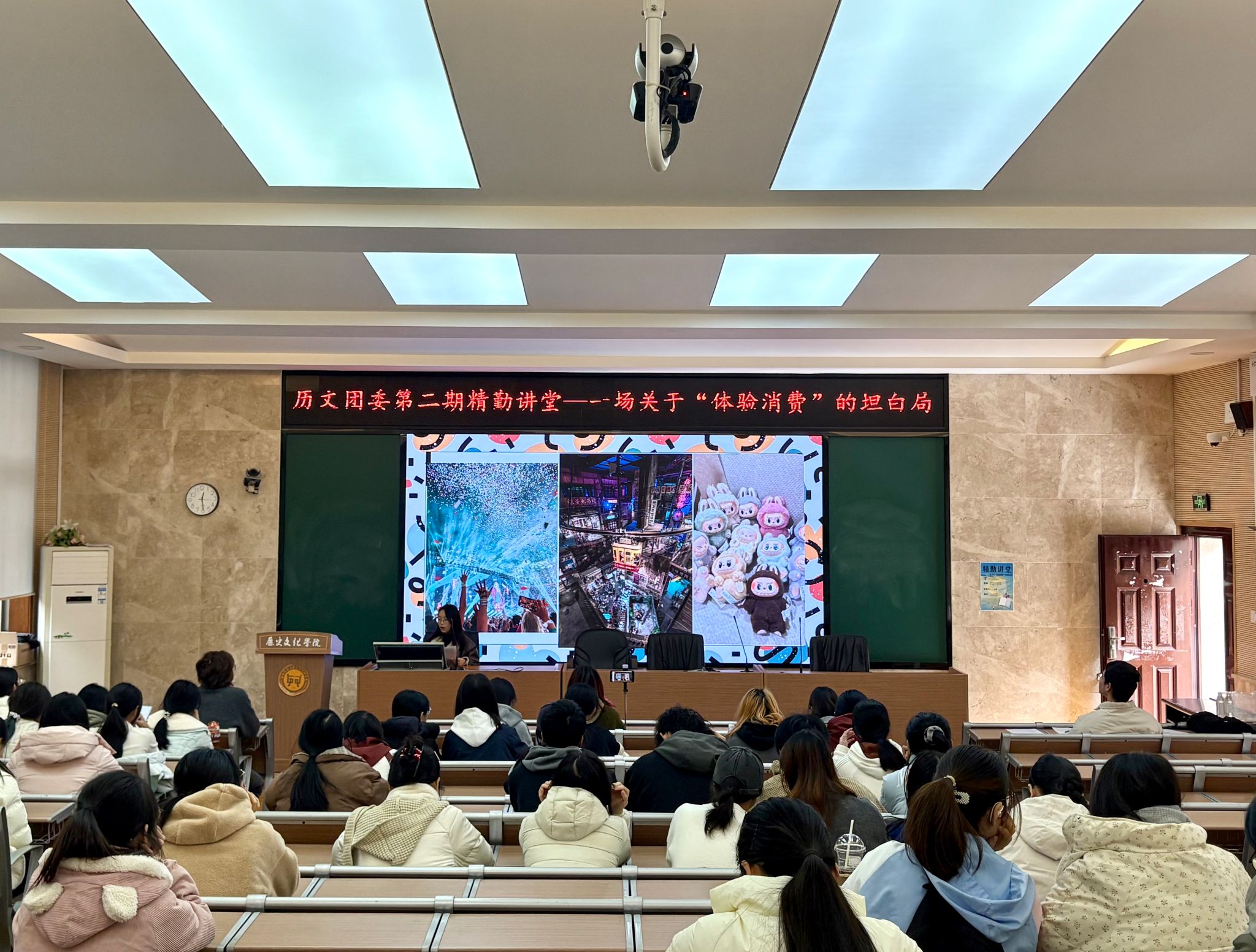 (通讯员 陈杨夫 陈一杰)11月20日中午,WilliamHill(威廉希尔)官网团委青创部在历文院203学术报告厅举办第二期精勤讲堂“一场关于‘体验消费’的坦白局“。此次活动由2023级学生孟湘主讲,青创小组全体成员参加。
