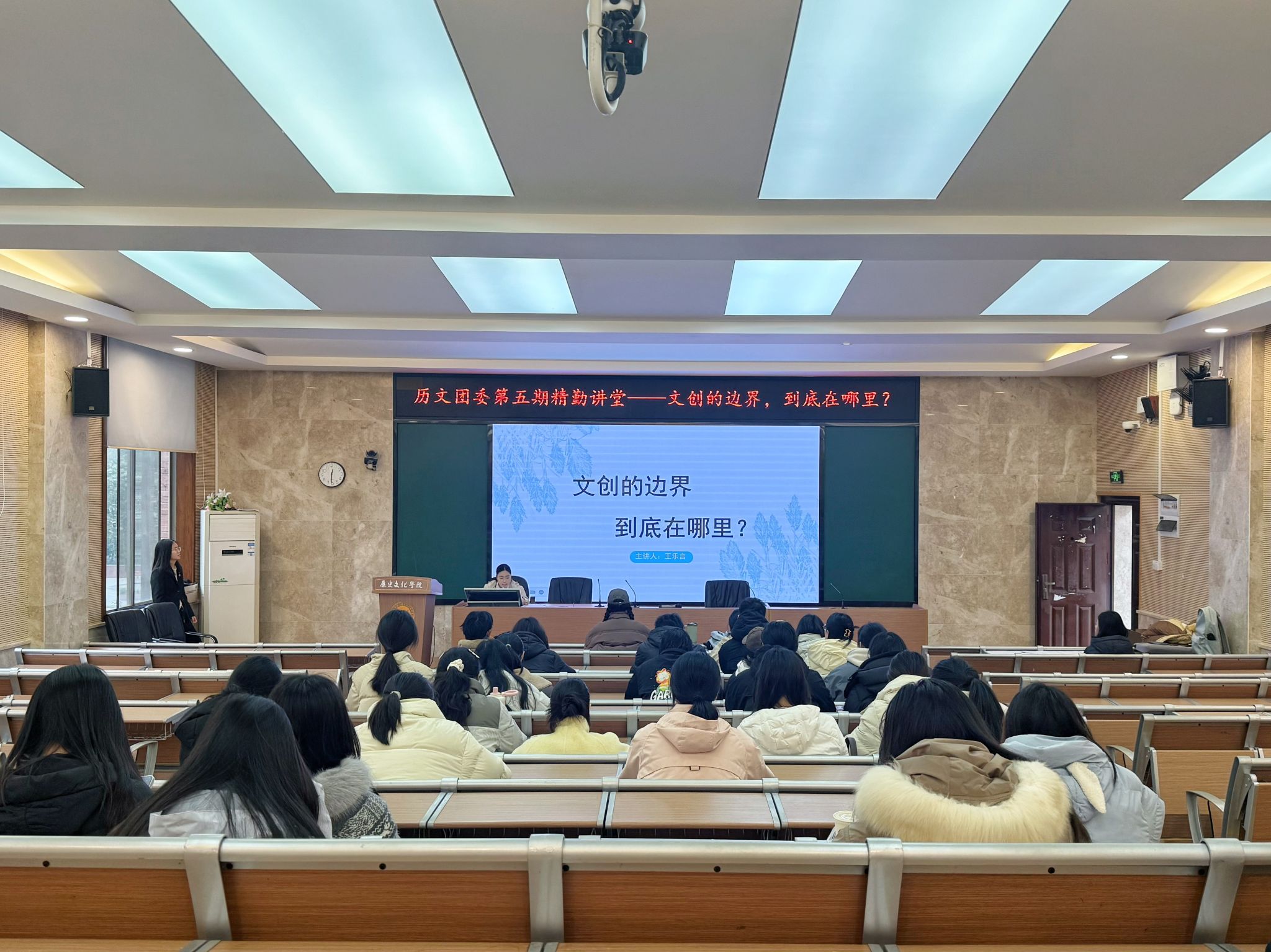 (通讯员姜李泉李采宸)3月5日中午,WilliamHill(威廉希尔)官网团委青创部在历文院203学术报告厅举办第五期精勤讲堂。此次讲堂以“文创的边界,到底在哪里?”为主题,由2024级学生王乐言主讲,青创小组全体成员参加。