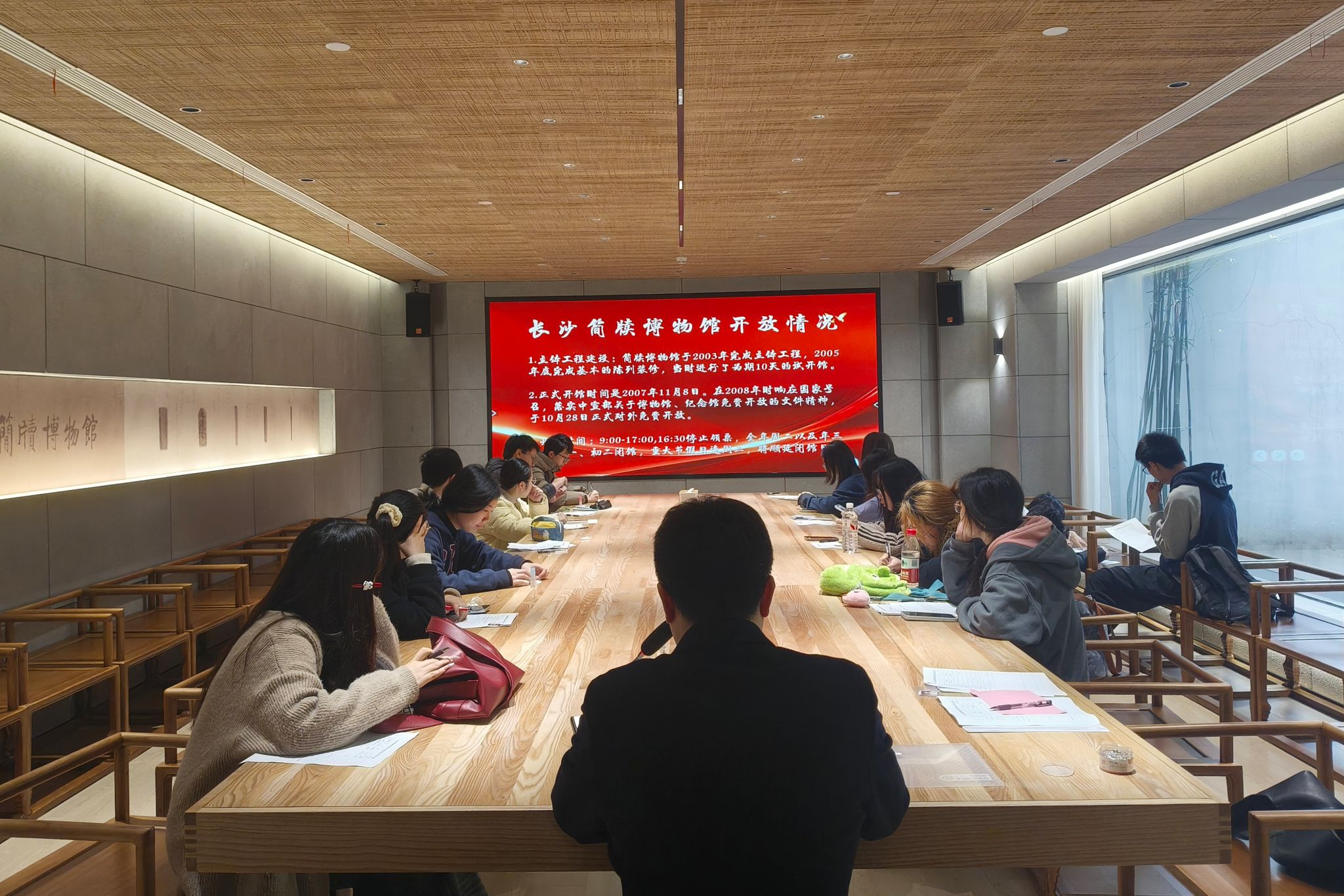 活动伊始,历文院青工部第二负责人顾藩带领志愿者到达会议室。简牍博物馆志愿活动的培训负责人李伟老师介绍了博物馆的基本信息,包括馆史、志愿服务团队组建以及志愿者守则等,并向志愿者说明了服务过程中的注意事项和工作岗位的具体安排,同时解答了志愿者的疑问。最后,志愿者们在讲解员的带领下走进展厅,对博物馆的基本陈列、馆内环境、设施布局以及文化理念进行基本的了解。