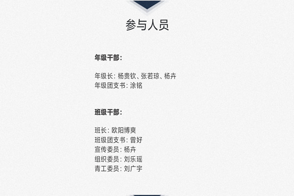 会前,曾好下发《考核自评登记表》给需要述职的干部完成自评。会中,先由年级长和年级团支书进行述职,年级长张若琼介绍了全体年级干部及自己个人在一年中完成的工作,并总结了在工作中得到的经验与教训,她也表示会更加积极地做好学生工作。随后,班级干部也对各自的工作进行评述。曾好以“不忘初心,继续前行”为主题对过去一年的工作进行总结,表示要时刻牢记作为一名学生干部的初心与使命。欧阳博爽回顾了各干部在这一年中对班级的贡献,表示干部应始终秉持服务为本的工作宗旨,并提出三点总结,立足当下展望未来。最后,全体同学填写《考核评议民主表》,对各个干部进行评价打分。