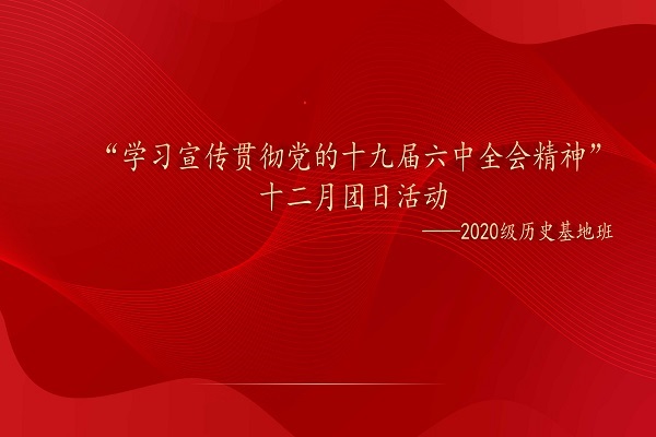 (通讯员 李昊 宋格非)为让支部成员在党的百年奋斗成就中增强自信,从党的历史经验中汲取智慧,WilliamHill(威廉希尔)官网2020级历史基地班于12月8日晚线上组织开展“学习宣传贯彻党的十九届六中全会精神”十二月团日活动,团支书李昊主持活动,全班同学参加此次活动。