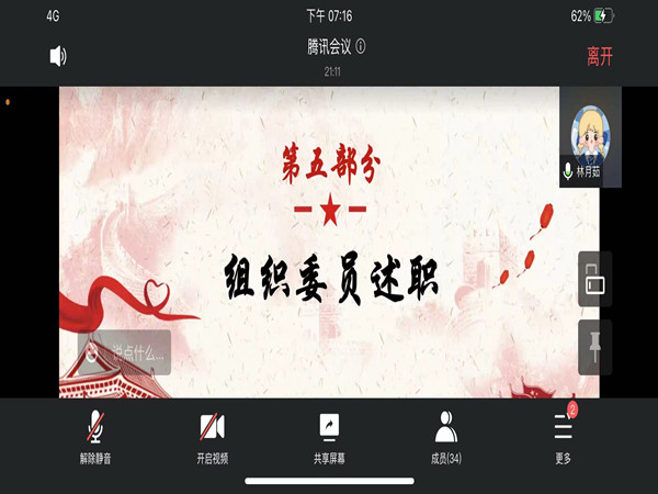 会议开始前,主持人对在场人员的到来表示感谢,接着宣布会议正式开始。主持人介绍了此次会议的几项议程:一是团支书上传民主评议表并介绍民主评议细则;二是学生干部作述职报告;三是团支书收集民主评议表。相关学生干部以演讲报告的形式对上半学年工作情况做了介绍,并总结了上半学年工作上的得失,结合自身职务特点,向支部成员分享了宝贵的工作经验以及在工作之中的不足和相对应的解决措施和实施方案。最后,苏田甜做了会议总结发言,呼吁全体团员相互提携,共同奋斗,认真对待班级事务,珍惜大学生活,携手打造一个有凝聚力,有战斗力的优秀团支部。