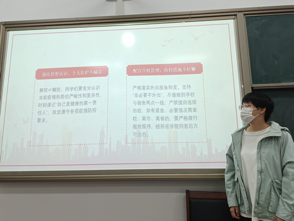 此次“同心战疫,共克时艰”主题团日活动有利于引导支部团员深入了解和学习疫情防控的相关要求、积极配合学校管理,自觉将伟大抗疫精神内化于心,外化于行。