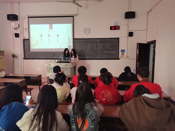 刘楠对上一阶段工作进行总结。她表示,在本月工作中,各理事都能积极参与各项社团活动,并能以较高质量完成。这为社团后续工作的开展提供了良好的基础。同时,她也对上一阶段工作的不足及改进方法进行了说明。
