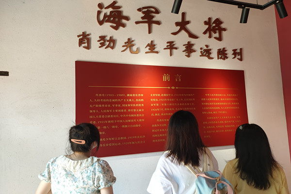 往右边走则是肖劲光生平展览。我们了解到萧劲光是人民海军的主要创建人,被誉为“人民海军之父”。在晚年岁月中,肖劲光和晚辈讲得最多的就是“一个人离开了党,将一事无成”。他作风严谨,品格高尚,谦虚谨慎,功高不居,廉洁自律。作为中国杰出的无产阶级革命家、军事家,国家和军队的优秀领导人,人民海军的主要创建者,中华人民共和国开国大将,肖劲光为党、国家和人民奉献了一生。