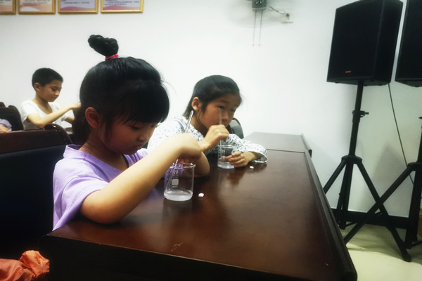 活动伊始,志愿者刘慧娇通过看视频回答问题的方式引入了当期活动主题:维生素D,同时以一问一答的方式让孩子们对本期活动主题有了一个大概的认知。随后志愿者陪同孩子们进行了一个小实验,观察维D钙片的溶解过程,让他们获得对维生素D钙片水溶性的直观的了解。实验过程中,有的孩子提出相关的疑问,志愿者们也一一耐心解答,气氛十分温馨融洽。活动最后,志愿者带领孩子们体验了坐轮椅过障碍,感受到不便,孩子们纷纷表示要强身健体积极锻炼,及时补充维生素D。