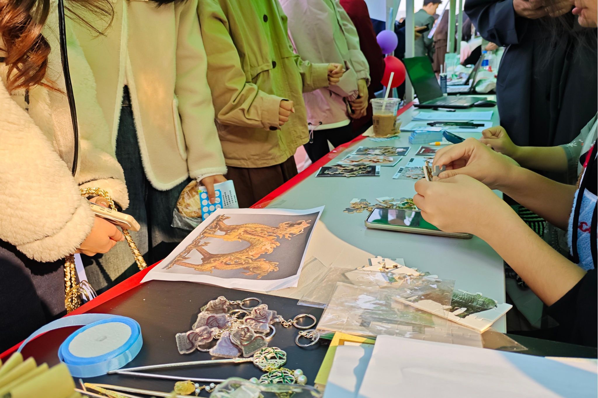 活动伊始,历文院四个社团共同表演古风歌舞剧《棠梨煎雪》,随后各社团分发宣传单、组织趣味活动、派发活动礼品,如春秋学社开展的诗词数独、文物识记、猜成语诗等活动,将多彩的活动形式与历史文化的精神内核相结合,吸引了新老会员的积极参与,展现出历文院学子对历史文化的新理解与新追求。活动期间,院团委书记陈卓君及学工办主任兼学生社团管理服务中心指导老师陈敏前来指导,与现场的各社团理事和新老会员共同参与活动并合影。活动同时,招新工作也在各社团理事的组织下有序进行。
