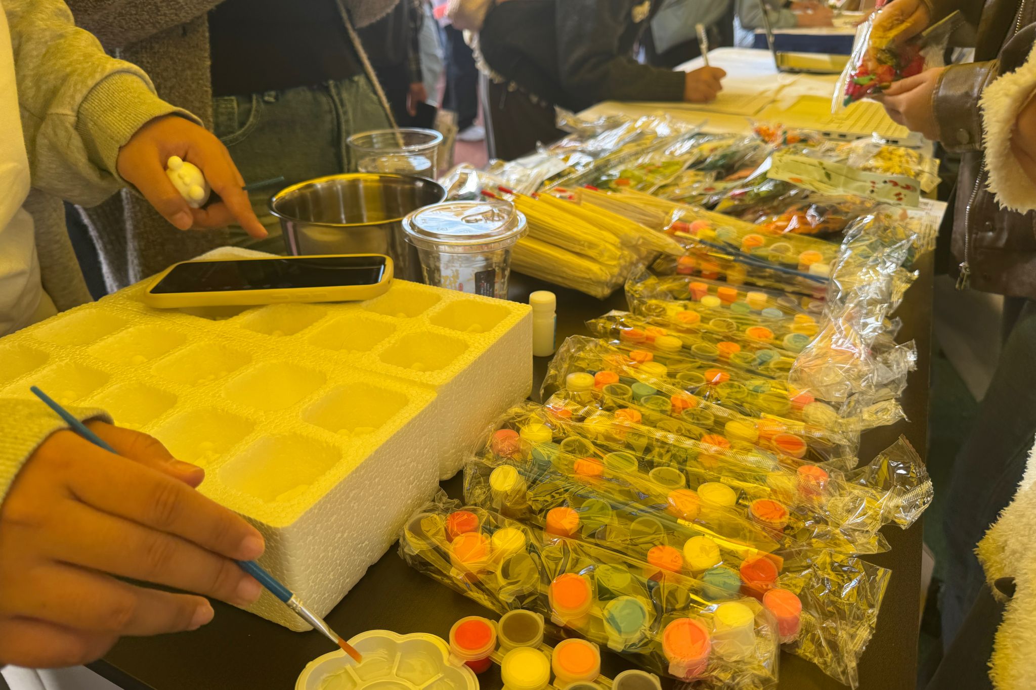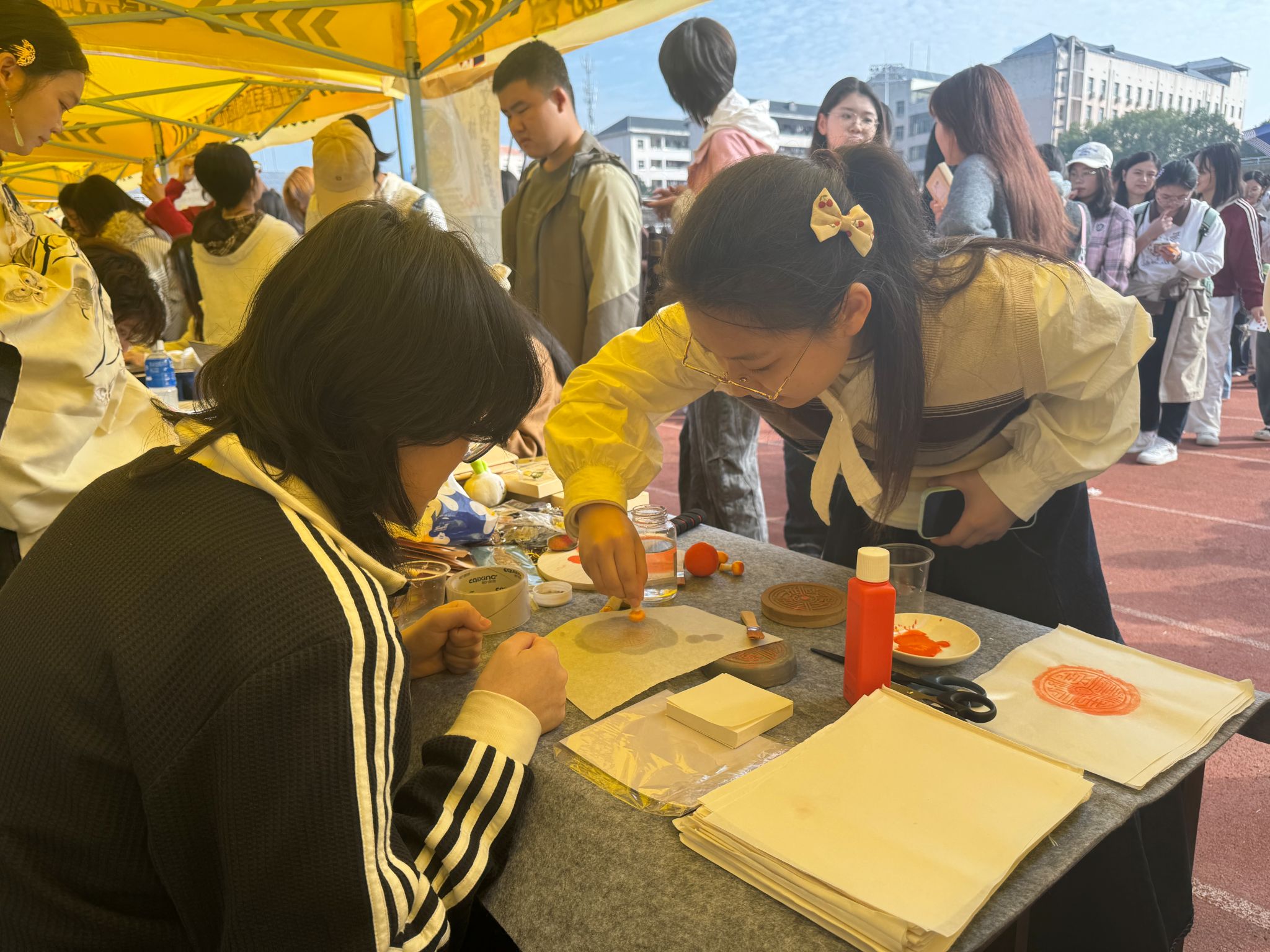 活动伊始,历文院四个社团共同表演古风歌舞剧《牵丝戏》,展示传统文化魅力。随后各社团通过分发宣传资料、组织趣味活动、赠送活动礼品等形式,展现社团特色。如文物爱好者协会开展的飞羽入壶、瓦当拓印、甲骨猜字等活动,将传统历史文化的精神内涵与多彩的活动形式相结合,利用积分兑换奖品的活动模式,吸引新老会员积极参与,充分展现历文院学子对中华传统文化的热爱与创新传承。活动期间,院学工办主任兼学生社团管理服务中心指导老师陈敏前来指导,现场了解各社团招新情况,并与现场的各社团理事和新老会员共同参加活动并合影。活动同时,各社团展位前,同学们有序排队咨询社团详情并办理报名手续,各社团理事按照预定方案组织招新工作,确保活动有序进行。