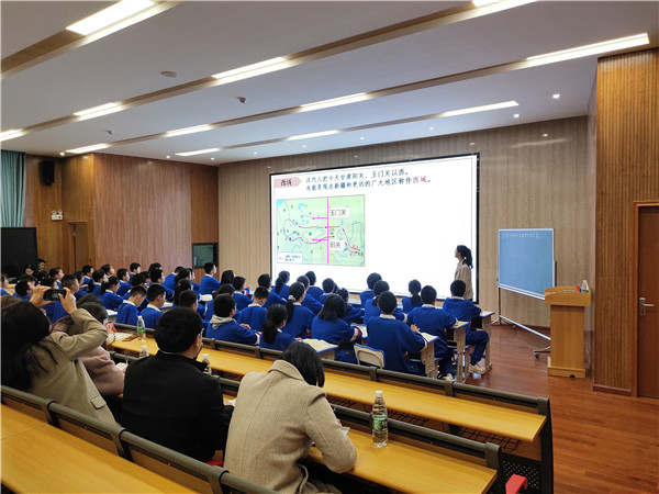 此次公开课授课内容为《沟通中外文明的丝绸之路》。课堂上欧阳美奇以鎏金铜蚕文物为导入,围绕张骞通西域、海陆两丝路、西域的管理三部分展开授课,并重点讲述了丝绸之路开通的意义,最后以“一带一路”新构想为结尾。整堂课思路清晰、内容完整、与学生互动性强,展示了实习队在雅礼麓谷中学两个月来的实习成果。