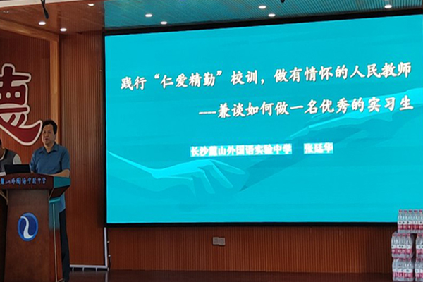 刘志华老师率先发言,他主要针对从学生向老师这一身份的转变问题、实习老师作息时间问题以及实习老师着装等问题提出了具体要求。其次是邓莉娜老师的分享,她要求大家在教育实习和教学实习中,要做到多看、多听、多观察,她友好而真挚地提醒大家在实习期间需要同指导老师与班主任协调沟通,并预祝大家实习顺利。第三是张廷华副校长的教育视频分享,并以此为基础提出让实习老师做让学生喜欢的好老师、做到多看多问多做多想等期望和要求。最后是张辉校长的发言,他对实习老师提出了“正、实、新”的要求,即老师三观要正,要充满正能量;要少抱怨,脚踏实地;要学会创新。