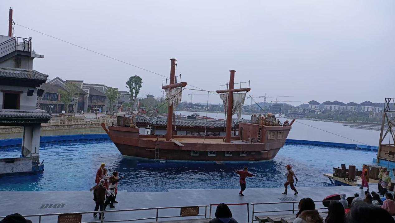 经过短暂的休憩,下午,各位同学以小组单位在带队老师的指导下在新华联铜官窑古镇进行研学。古镇涵盖17处人文景点、8大博物馆、5大演艺中心等,部分同学参与体验了黑石号特技秀实景演艺、魔法釉传奇5D剧场、听雨轩戏剧表演、口技表演等,在感受传统文化的魅力同时对铜官窑古镇的发展做出思考。