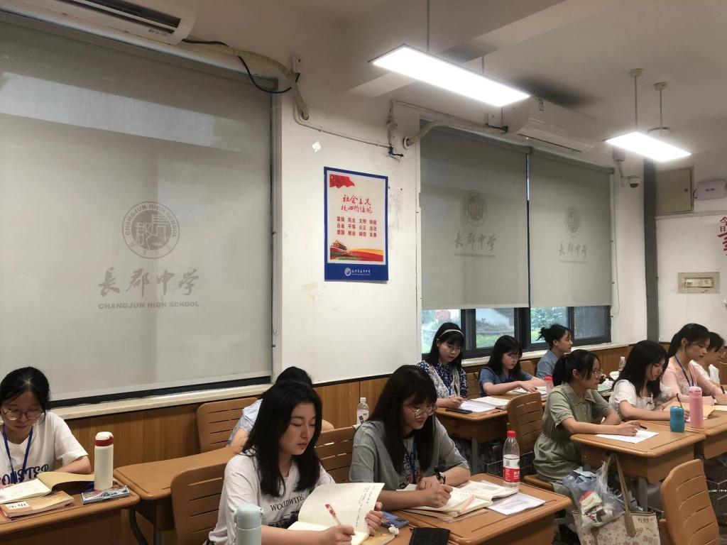 首先,张维斌组长带领实习队员来到高一班主任办公室,与各位班主任进行一对一的交接工作,班主任们纷纷表示了欢迎,并表示会全力支持实习工作的开展。随后,各个班主任分别对各班的实习生进行了班级介绍,工作安排和实习要求,包括早中晚的考勤制度、坐班安排和班级工作的开展,并希望大家认真对待,虚心学习。在与班主任工作对接完成之后,实习队队员分为两批次先后观摩了长郡中学历史教研组长王强山老师的课堂,课中大家十分认真,不时提笔记录,受益匪浅。