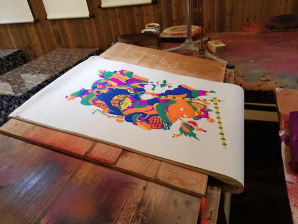 向工作人员了解到,目前前往滩头来参观年画的人比较多,有不少的研学组织了解与学习滩头年画。高腊梅年画作坊现有钟建桐与钟星琳两位传承人,钟星琳主要负责雨花非遗馆门面的运营。据了解,滩头年画的制作工序极为复杂,从造纸原料的选择、纸张的制造、刷底,到刻版、七次印刷、七次手绘,一张年画的生产需要经过二十多道工序。与众不同的是滩头年画讲究集约化制作,从手工造纸到年画成品都在滩头一个地方生产,在全国年画制作中极为鲜见。