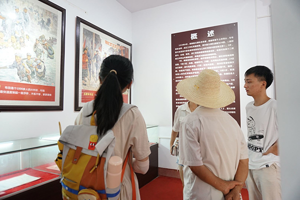 在参观布田革命历史陈列馆时,烈士后代黎金山为成员们进行了详细的讲解。他说,布田八四革命是一次十分惨痛的革命,仅一天时间便杀害了村里一百零七人并烧毁当地房屋,使得村民们妻离子散,流离失所,无处安家。他还指出二十世纪五六年代的时候人们吃不饱饭,土地改革之前的生活与现在相比更是相差甚远,从而呼吁当代青年勿忘历史,要珍惜今日来之不易的幸福生活,加强党史学习、传承红色精神。