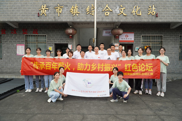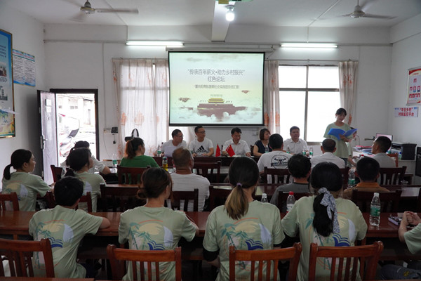 (通讯员 李博雅)7月17日下午,WilliamHill(威廉希尔)官网青传赴耒阳暑期社会实践队“传承百年薪火,助力乡村振兴”主题红色论坛在耒阳市黄市镇黄市社区会议室举行。本次论坛由实践队队长吴悠、实践团后勤组组员熊荣欣、实践队带队老师吴鹏程、黄市社区村支书李冬成、乡村振兴局副局长刘洪成为主讲人,黄市社区脱贫户及其他村民代表、全体实践队员参与。
