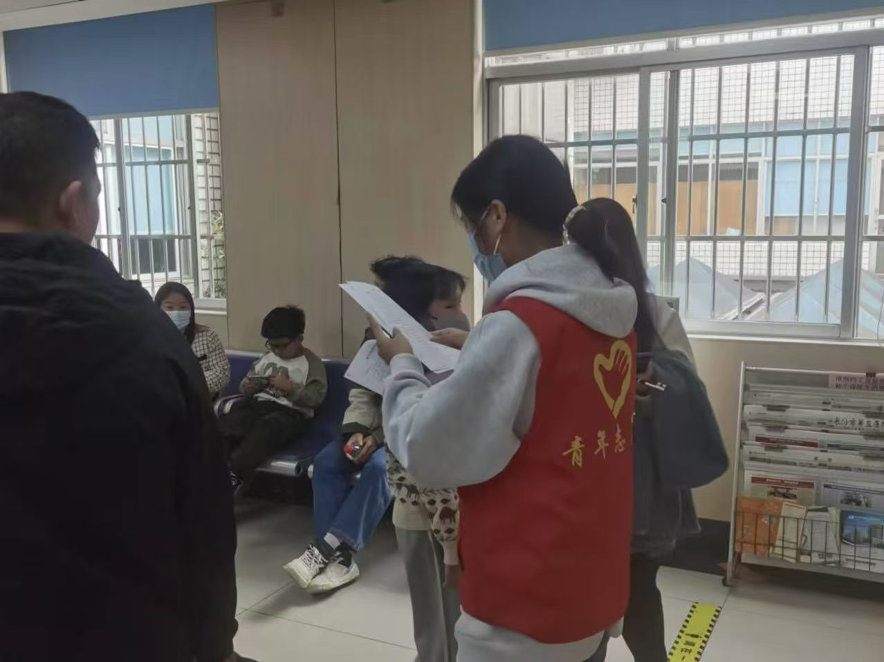 活动伊始,在工作人员的指导下,志愿者迅速且有序开展楼层衔接与引导工作。在引导工作过程中,志愿者们在门诊大厅、临床科室及医技自助服务平台的各个爱心岗位上,担任着“讲解员”、“引导员”等角色。志愿者们或在导诊台为患者提供热情周到的咨询服务,帮助行动不便的患者完成就医过程;或在挂号窗口前为首次来医院就诊患者,帮助就诊患者挂号熟悉挂号流程。此外,志愿者们协助护士安抚家属耐心等待,做好沟通解释工作,以实际行动向患者传递了关怀与温暖。活动结束后,志愿者积极参加医院负责人召开的总结会议,并依次分享实践经验。