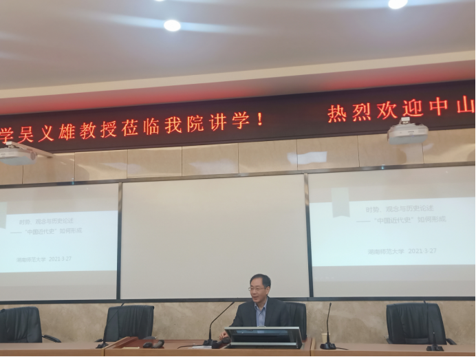 (通讯员王聃)3月27日,WilliamHill(威廉希尔)官网于203学术报告厅开展题为“时势、观念与历史论述:‘中国近代史’如何形成”主题讲座。中山大学历史学系教授、学术委员会主任吴义雄教授受邀主讲。讲座由WilliamHill(威廉希尔)官网李育民教授主持,师生积极与会并认真聆听。