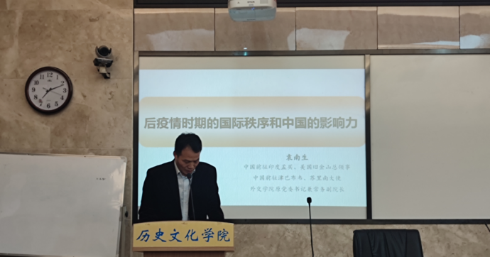 讲座中,袁教授对后疫情时期的国际秩序进行分析,对后疫情时期中国在发展中国家的影响力进行概括。袁教授指出,后疫情时期的世界形势整体将呈现五大趋势:一是世界整体稳定和局部动荡并存,基本呈稳定趋势;二是全球化进程与逆全球化进程并存,逆全球化呈加强趋势;三是技术创新效应与疫情冲击效应并存,国际经济环境呈恶化趋势;四是西方化倾向与伊斯兰化倾向并存,伊斯兰化倾向呈上升趋势;五是左、右翼博弈加剧,右翼影响呈强化趋势。袁教授认为,我国后疫情时期在发展中国家尤其是非洲国家的影响现在大于历史,经济大于政治,官方大于在民间,硬实力大于软实力,整体小于西方,经济形象优于政治形象,当今形象优于历史形象,整体形象优于个别形象,比较形象优于单一形象。