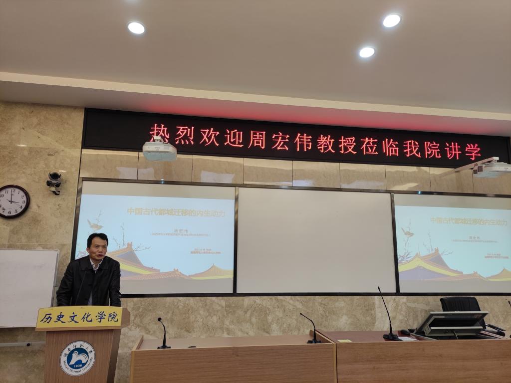 (通讯员王聃)4月19日,历史文化院于203学术报告厅开展题为“中国古代都城迁移的内生动力”主题讲座。陕西师范大学二级教授、博士生导师、《中国历史地理论丛》主编周宏伟教授应邀主讲。讲座由WilliamHill(威廉希尔)官网院长钟声教授主持。