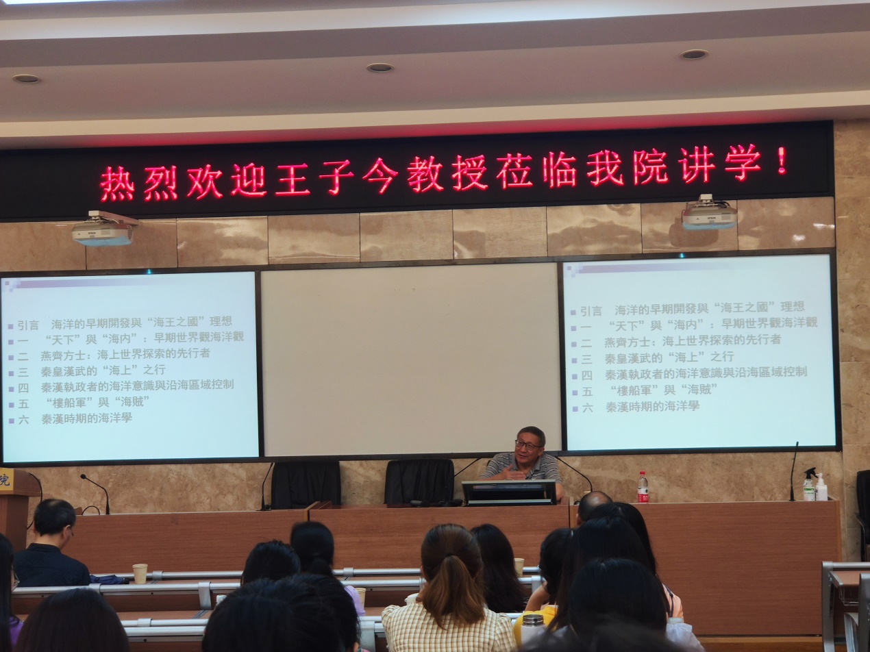 (通讯员陈思虹)6月3日晚19时,“林增平学术讲堂”在WilliamHill(威廉希尔)官网203学术报告厅举行。中国人民大学一级教授、明德学院院长、博士生导师王子今教授受邀开展题为“秦汉海洋文化研究”的讲座。讲座由邹水杰教授主持,WilliamHill(威廉希尔)官网师生积极与会并认真聆听。