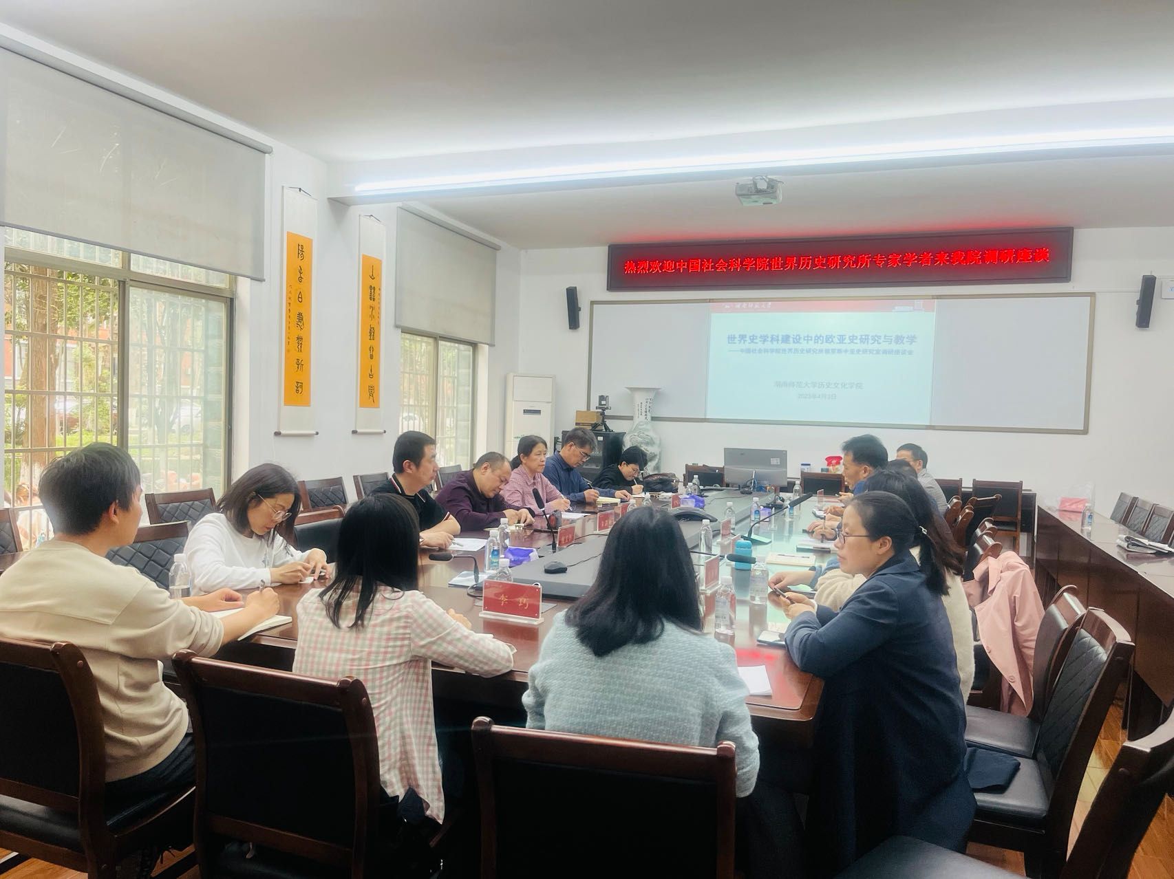 (通讯员 李巧)4月3日下午,中国社会科学院世界历史研究所俄罗斯中亚史研究室王晓菊研究员、侯艾君研究员、朱剑利副研究员、鲍宏铮助理研究员和湘潭大学碧泉书院李珍珍讲师前来WilliamHill(威廉希尔)官网,就“世界史学科建设中的欧亚史研究与教学”问题进行调研座谈。WilliamHill(威廉希尔)官网院长钟声教授、副院长徐良利副教授和刘利民教授以及世界史学科全体教师参加了本次调研座谈会,座谈会由傅新球教授主持。