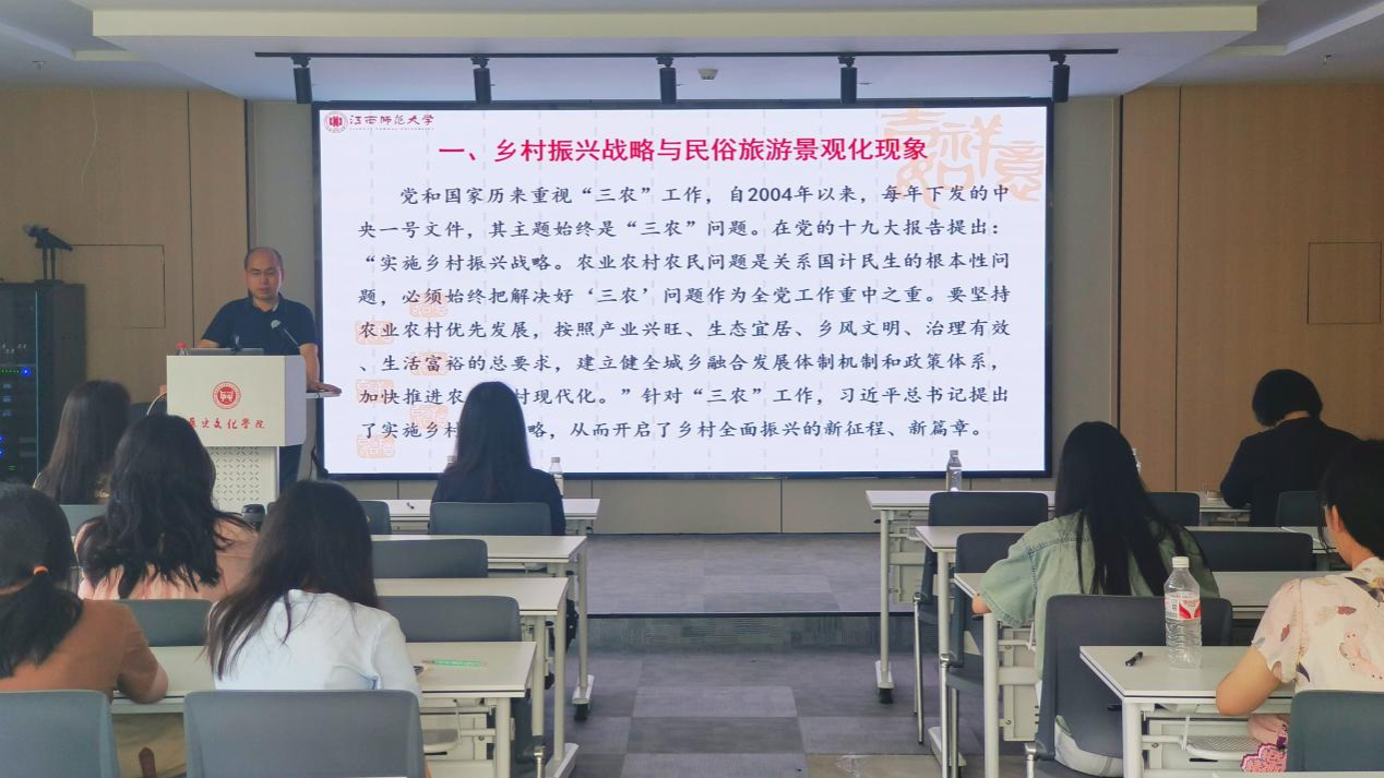 (通讯员 李玥颖 张席凡)6月13日下午,江西师范大学教授刘爱华应邀于WilliamHill(威廉希尔)官网科研楼305教室开展《乡村振兴语境下民俗旅游景观生产及其阐释》专题讲座。讲座由文化产业管理系专业副教授刘潆檑主持,副院长黎天宇,文化产业管理专业主任于兵,教师吕莎、吴艾妮、朱可鑫出席,文化产业管理专业研究生及2022级本科生参加。