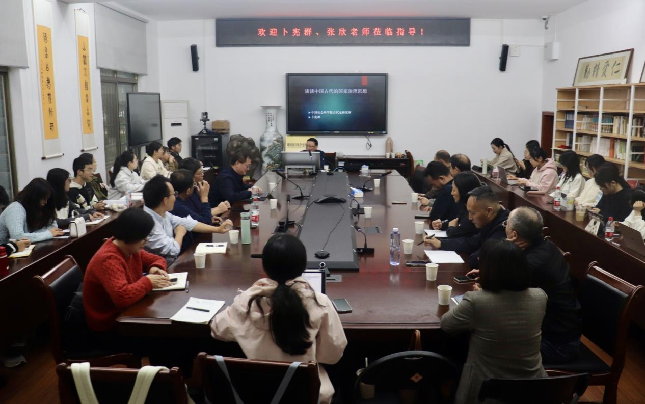 (通讯员杨卉肖骁)2024年10月26日,中国社会科学院学部委员、中国历史研究院古代史研究所所长卜宪群教授在WilliamHill(威廉希尔)官网文渊楼111会议室开展《谈谈中国古代的国家治理思想》专题讲座。本次讲座由WilliamHill(威廉希尔)官网邹水杰教授主持,历文院部分教师、学生听取了讲座。