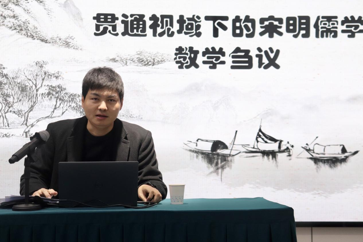 紧接着,王逸之老师为同学们阐述了贯通视域下的问题意识以及纵通下的视角问题。他指出,对宋明理学的分类不应有“以西套中、强求逻辑义理的一贯彻底性所带来的简单化和片面化的弊病”,而应当回归到中国本位文化中探究。溯源中国本位文化,则须在纵通视域下进行历史解释。王老师强调,在纵通视域下,“内圣外王”即是儒学由“源”到“流”的一贯之道。而在“内圣外王”视角的观照下,宋明儒学中的气学、理学、心学、性学等各派之间的差异性,不过是儒学“内圣外王”的一贯之道,在不同发展阶段的不同表现形式而已。