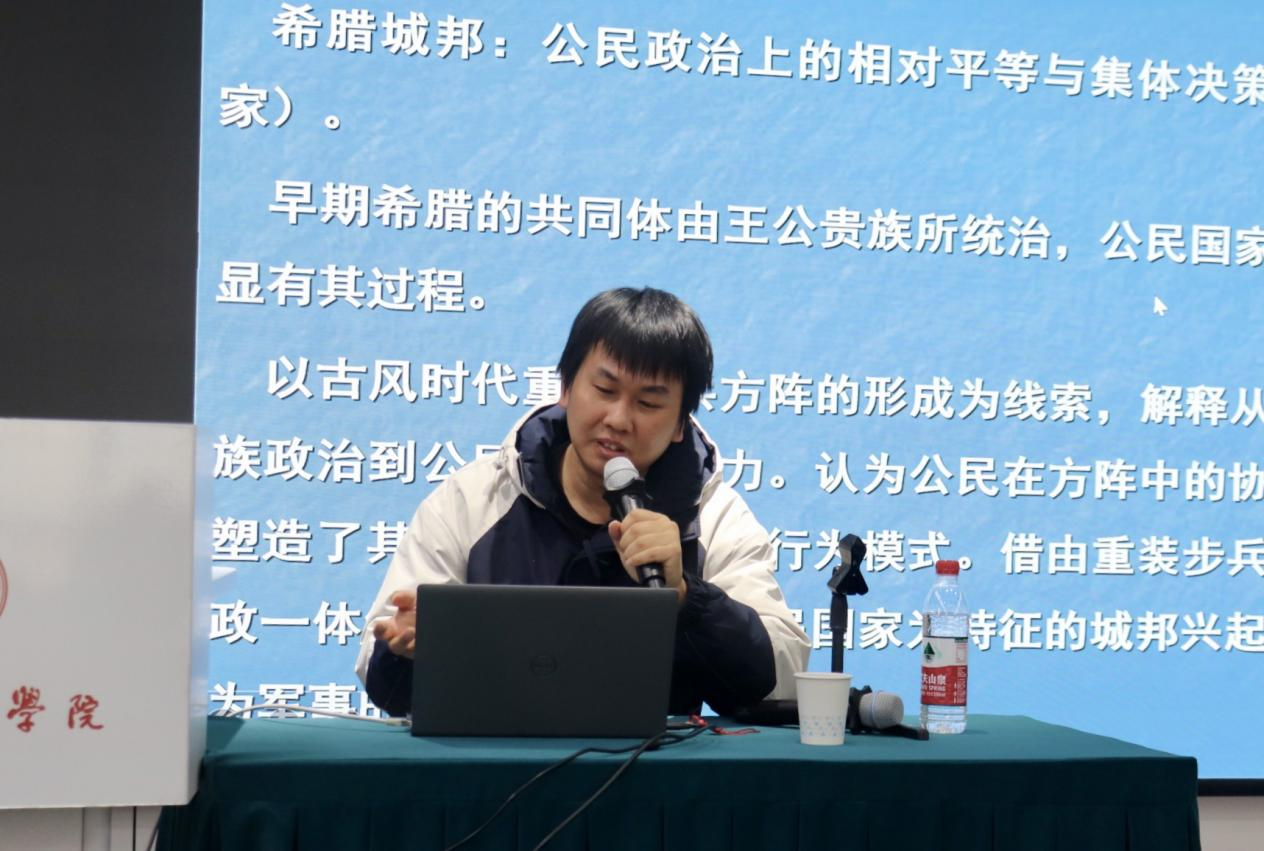 2024年12月19日,WilliamHill(威廉希尔)官网青年学者系列学术讲座第12讲在东广场科研楼305举行。WilliamHill(威廉希尔)官网讲师刘子韬老师担任主讲人,开展“重装步兵与古希腊城邦的兴起”专题讲座。本次讲座由WilliamHill(威廉希尔)官网谭赛花副教授主持,WilliamHill(威廉希尔)官网部分老师、学生参与讲座。
