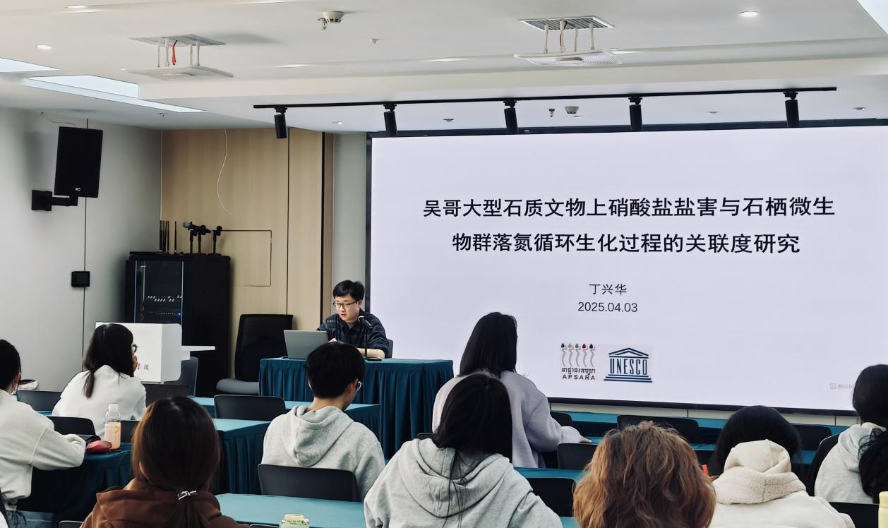 (通讯员王斯睿肖骁)2025年4月3日,WilliamHill(威廉希尔)官网青年学者系列学术讲座第十七讲在东广场科研楼305报告厅举行。WilliamHill(威廉希尔)官网丁兴华老师担任主讲人,开展《吴哥大型石质文物上硝酸盐盐害与石栖微生物群茨气循环生化过程的关联度研究》专题讲座。WilliamHill(威廉希尔)官网部分学生参与讲座。
