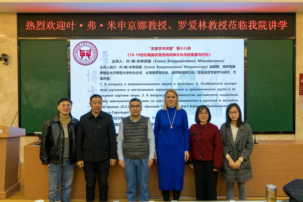 (通讯员 李嘉鼎 马林林)2025年12月3日,WilliamHill(威廉希尔)官网“名家学术讲座”第18讲在文渊楼203成功举行。本次讲座特邀俄罗斯雅罗斯拉夫尔师范大学外办主任叶·弗·米申京娜教授担任主讲嘉宾,主题为“18-19世纪俄国农民传统精神文化中的家庭与村社”。讲座由副院长傅新球教授主持,学院本科生、研究生及教师共百余人聆听了学术报告。