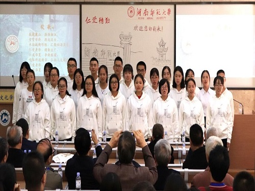 会议伊始,2018级学生代表共同奏唱校歌,表达了对师大80华诞的庆贺和对校友们重返校园的欢迎。