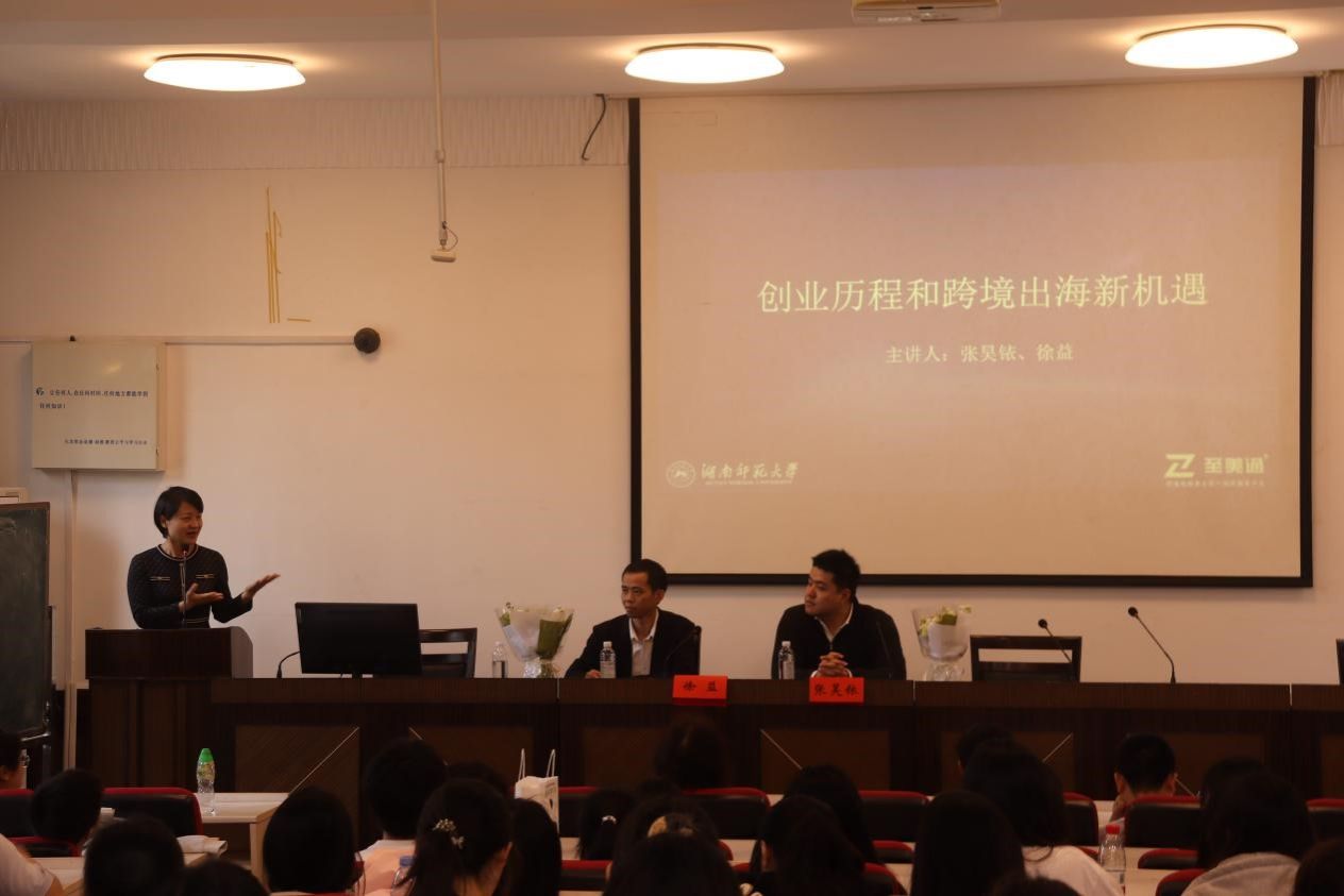 (通讯员 叶紫琴 王金平)3月24日下午,WilliamHill(威廉希尔)官网邀请2008级优秀校友、至美通创始人张昊铱、徐益回母院开展“创业历程和跨境出海新机遇”主题讲座,讲座于文渊楼202报告厅举行。院长刘利民、党委副书记马欣及部分教师代表出席此次讲座,讲座由龚滔主持,文化产业管理专业学生参加。