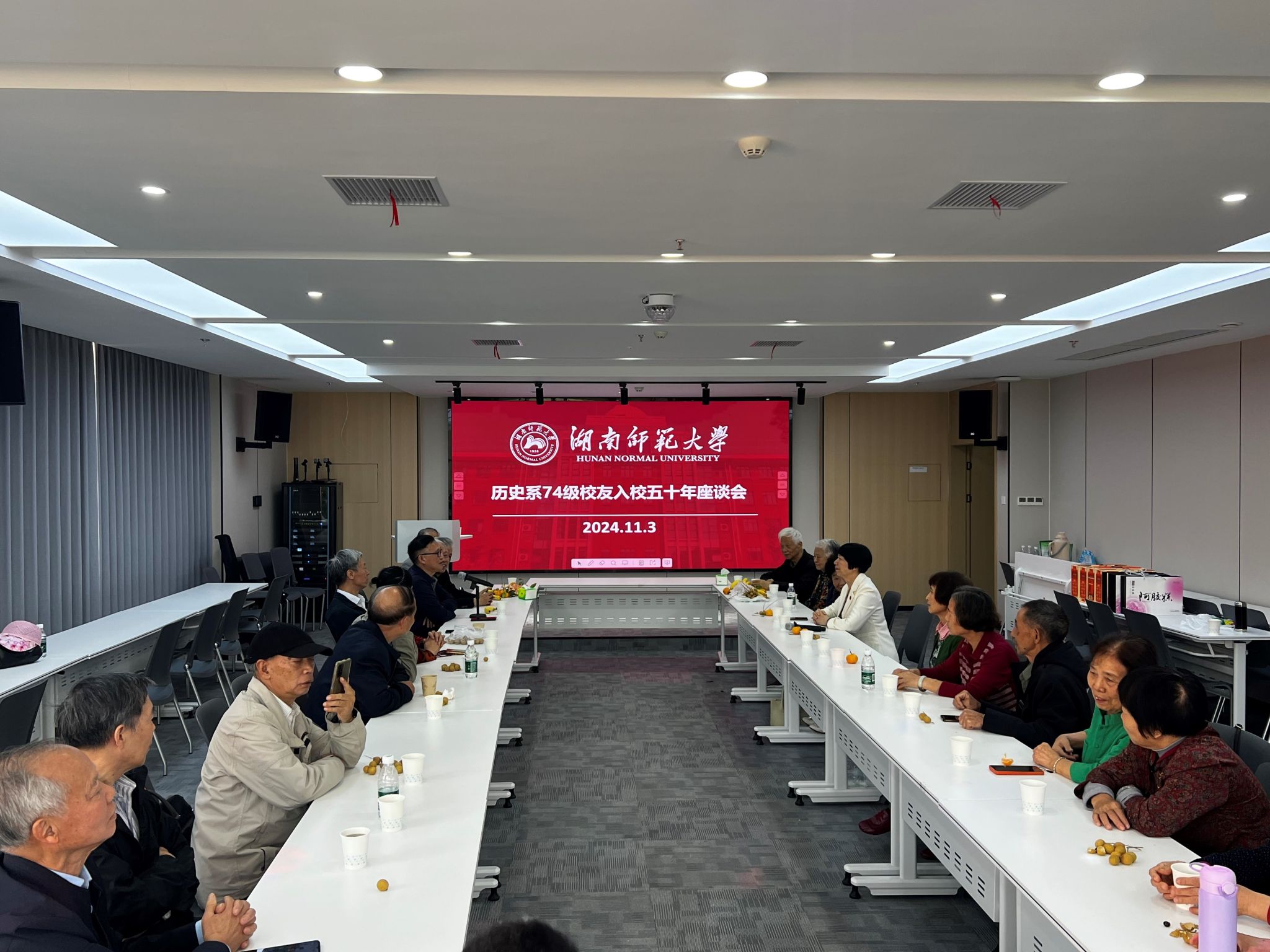 在座谈会上,孔春辉代表学院致欢迎辞,向校友介绍了学院的基本情况、办学成就和未来发展前景,并感谢校友对学校、学院发展建设的关心和支持。长沙市委党校教授周云华校友汇报了74级校友的整体情况,并代表全体校友感谢母校的培养。其他校友也分别介绍了毕业后的工作、生活、家庭等情况。教师代表也回忆了五十年前和校友在一起学习、生活、劳动的趣事。