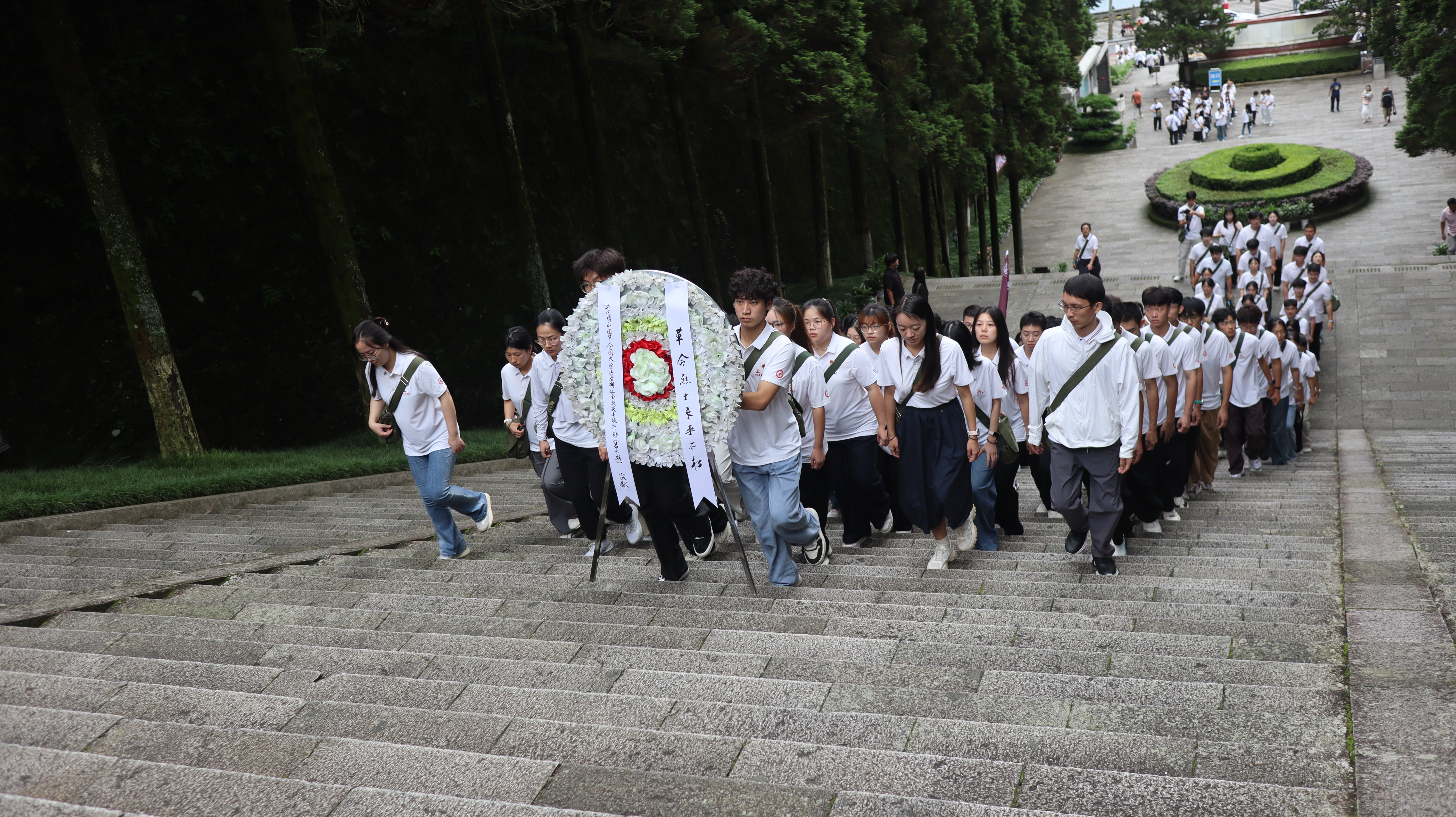 团队清早登临井冈山革命烈士陵园。同学们列队默哀、敬献花篮,重温入团誓词,铿锵誓言回荡在苍松翠柏之间。随后,大家进入陵园内部,在讲解员的带领下逐一了解为井冈山斗争而不懈努力的革命烈士们及其坚毅奋战的场景。