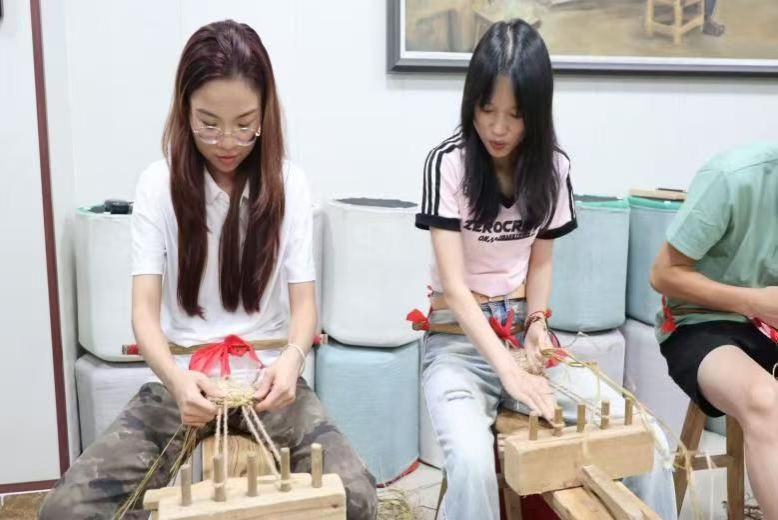 (图为实践团同学亲手编制草鞋)
