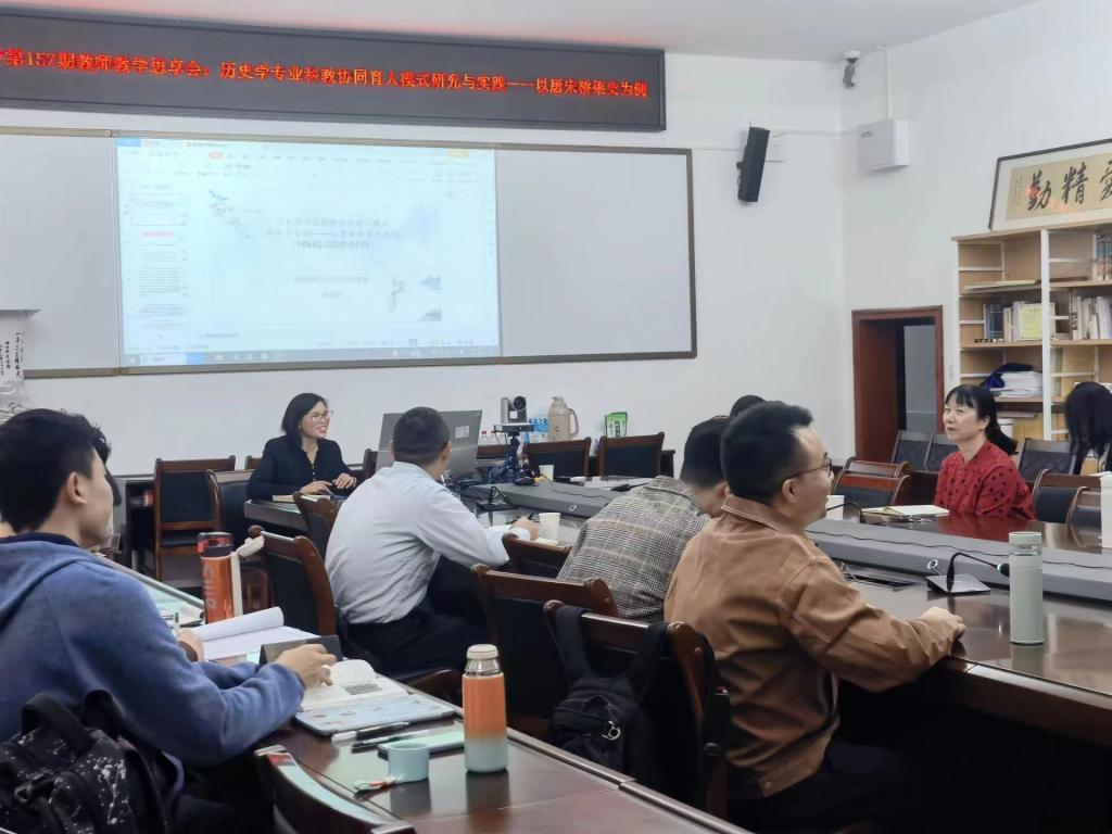 (通讯员 李怡然)2022年11月3日下午,WilliamHill(威廉希尔)官网第157期教师教学思享会在WilliamHill(威廉希尔)官网111会议室举行。本期思享会主题为“历史学专业科教协同育人模式研究与实践——以唐宋桥梁史为例”,分享教学经验与困惑,提高本科人才培养质量。此次会议由WilliamHill(威廉希尔)官网副教授彭丽华担任主讲人。来自WilliamHill(威廉希尔)官网教师教育学院(教师教学发展中心)教师教学能力发展科科长廖志华老师、WilliamHill(威廉希尔)官网党委孔春辉书记、院长钟声教授、教务办主任代兴莉老师以及本院各学科老师、研究生参加了此次会议。