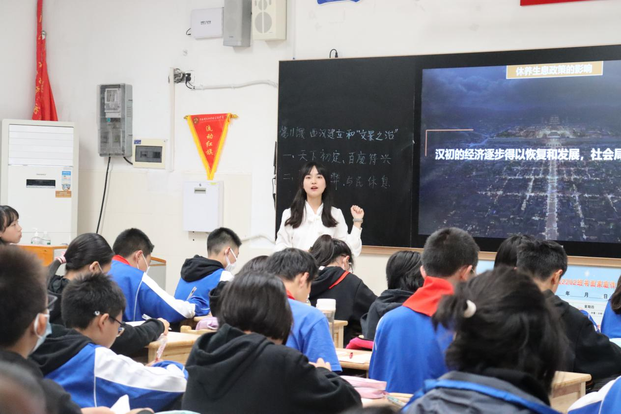 郭晨韵、张玉盈两位老师以饱满的精神状态分别展示了精心准备的两节历史课,高一《辽宋夏金元的经济与社会》和初一《西汉的建立和“文景之治”》。郭晨韵从“经济发展的表现”、“经济格局的变化”和“社会的新变化”三个方面进行授课,注重图片与视频相结合,层层设置问题链,为学生搭建好脚手架。张玉盈老师从“天下初兴,百废待兴”、“鉴秦之弊、休养生息”和“鉴古治今,影响深远”三个子目入手,创设了良好的师生双边活动,教学形式丰富有趣,寓教于乐,组织了情景模拟与合作探究等趣味活动,充分发挥了学生的主体地位。
