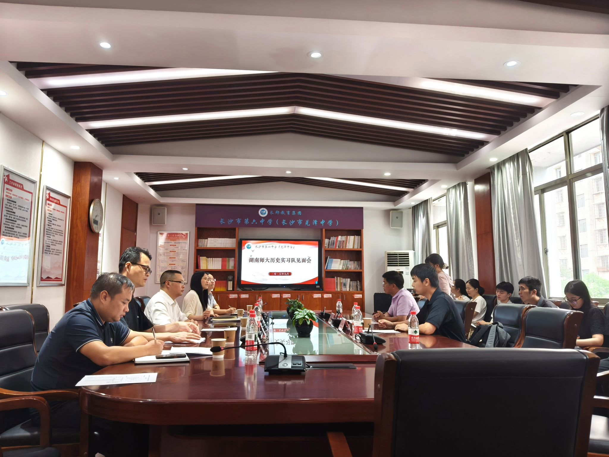 此次欢迎会由长沙市第六中学督导室主任李永红主持,王旭校长,宋国军副校长,教务处主任曾龙,教育处主任杨燕平以及各年级组长、历史教研组的老师们出席。