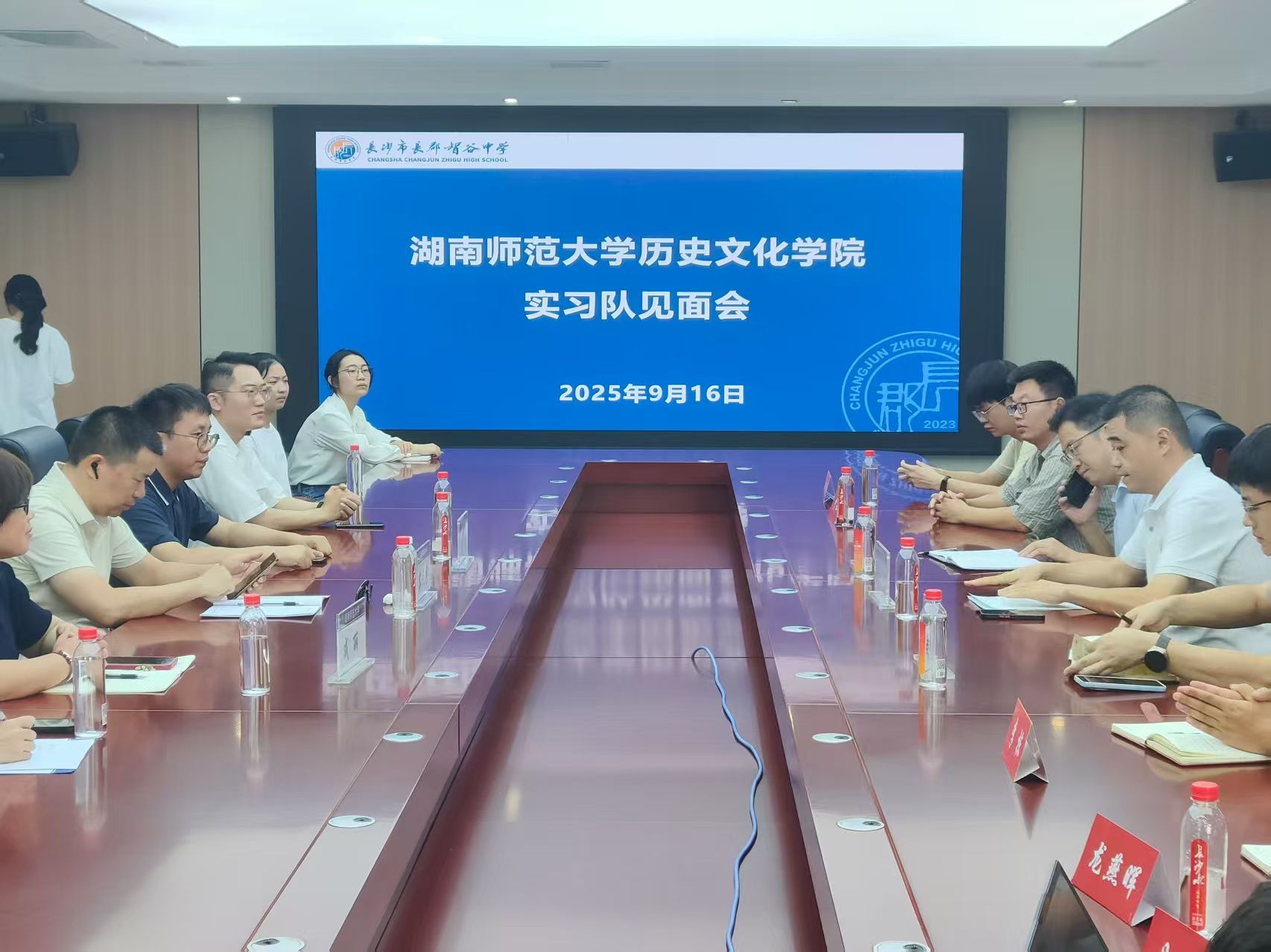 2025年9月16日,在WilliamHill(威廉希尔)官网副院长黎天宇、实习总负责老师成丽及指导老师陈昊、李明楠的带领下,WilliamHill(威廉希尔)官网第一实习队共20名实习生赴长郡智谷中学,于该校行政楼301会议室举行实习见面会。