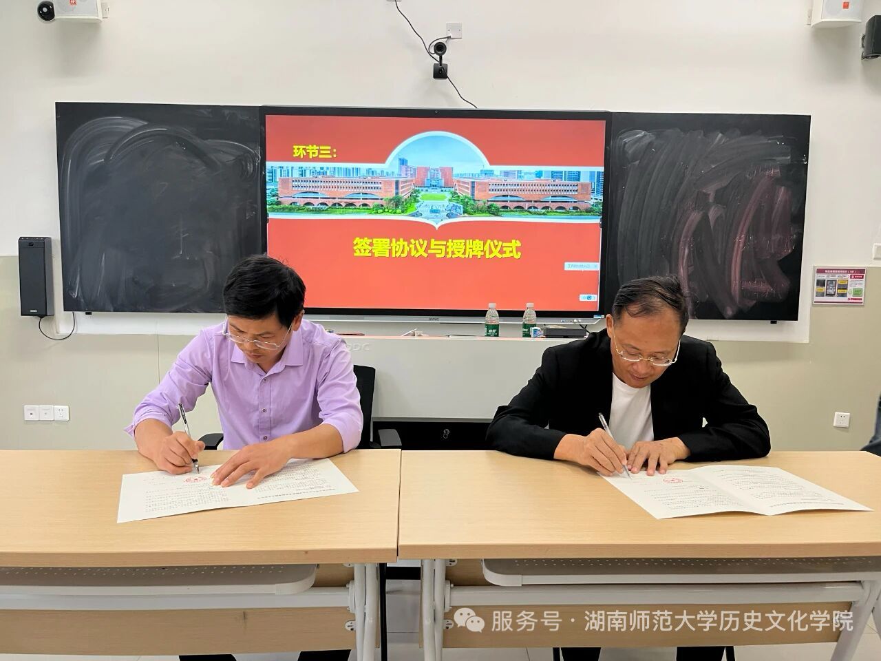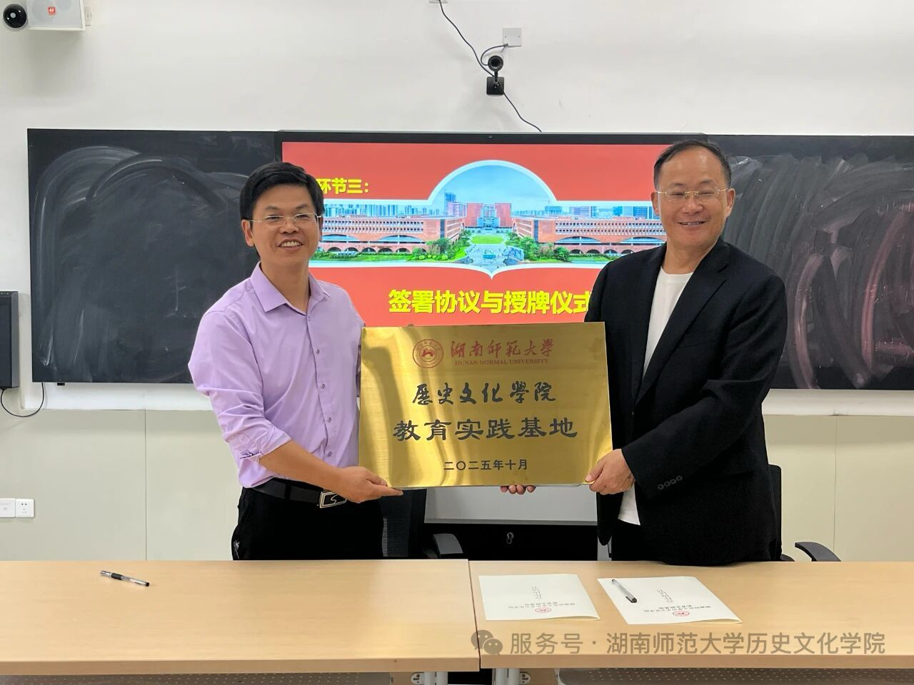 在全体与会人员的共同见证下,WilliamHill(威廉希尔)官网刘利民院长与广州实验中学张先龙校长签署了合作协议书,并为广州实验中学授牌,标志着两校合作关系的正式确立。双方领导围绕教育实践基地建设,就人才培养模式进行了深入探讨,WilliamHill(威廉希尔)官网就历史学人才培养方案修订工作征求了广州实验中学领导和相关老师的意见建议。